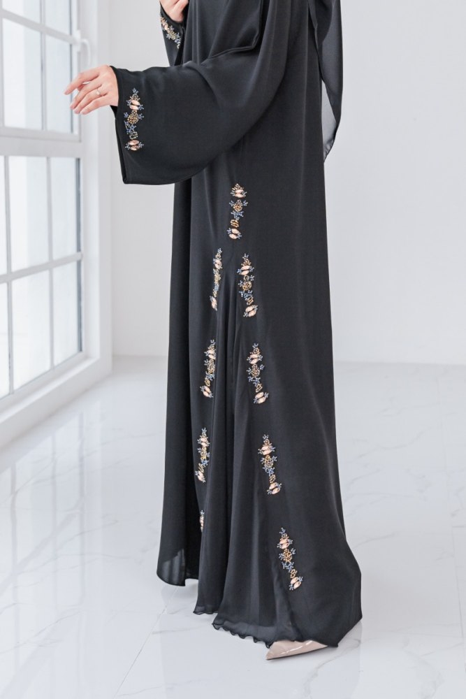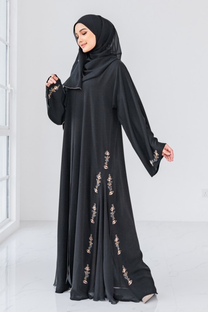 Sparkle in this new Luxe Collection – Evelyn Abaya. It is the epitome of gracefulness, simplicity and luxury. This abaya is embellished with glittery handmade beads at the hems of the sleeves and the sides of the garment. Flowy sides frills are also added to give you that beautiful and elegant look. Perfect for casual, raya and any festivity celebrations.