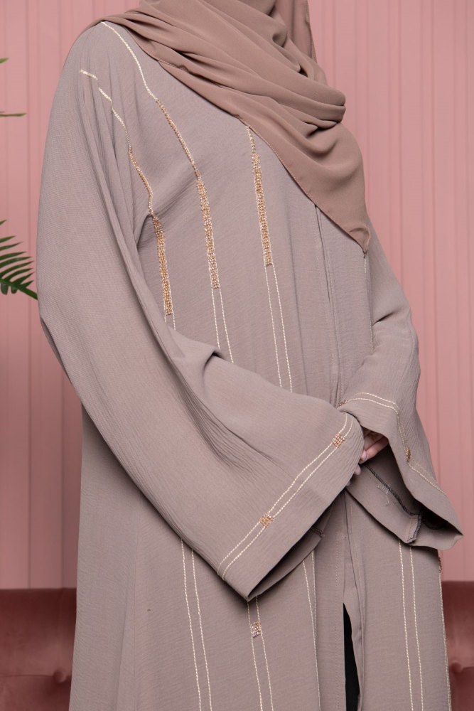 Beautiful Handmade Beads Abaya Eid 2021 Collection. This abaya is embellished with simple lines and sophisticated, sparkly handmade beads.