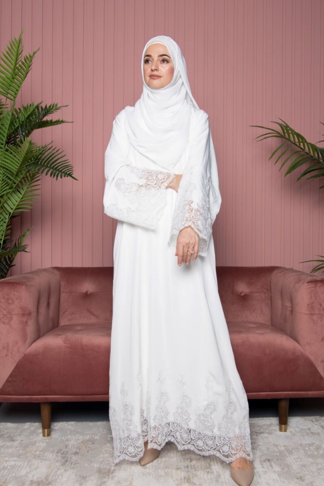 Luna Lace Abaya White