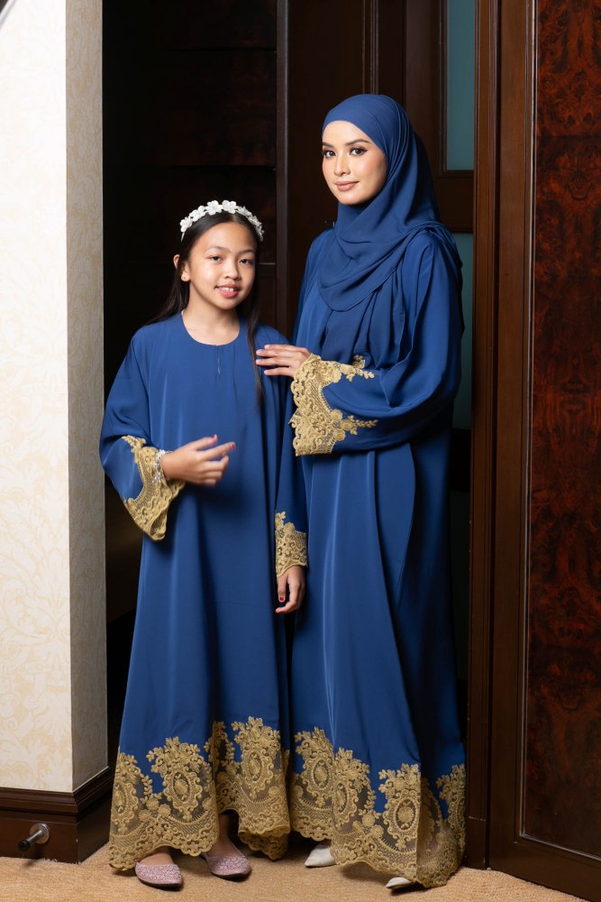 Suri Navy Blue - Gold Lace