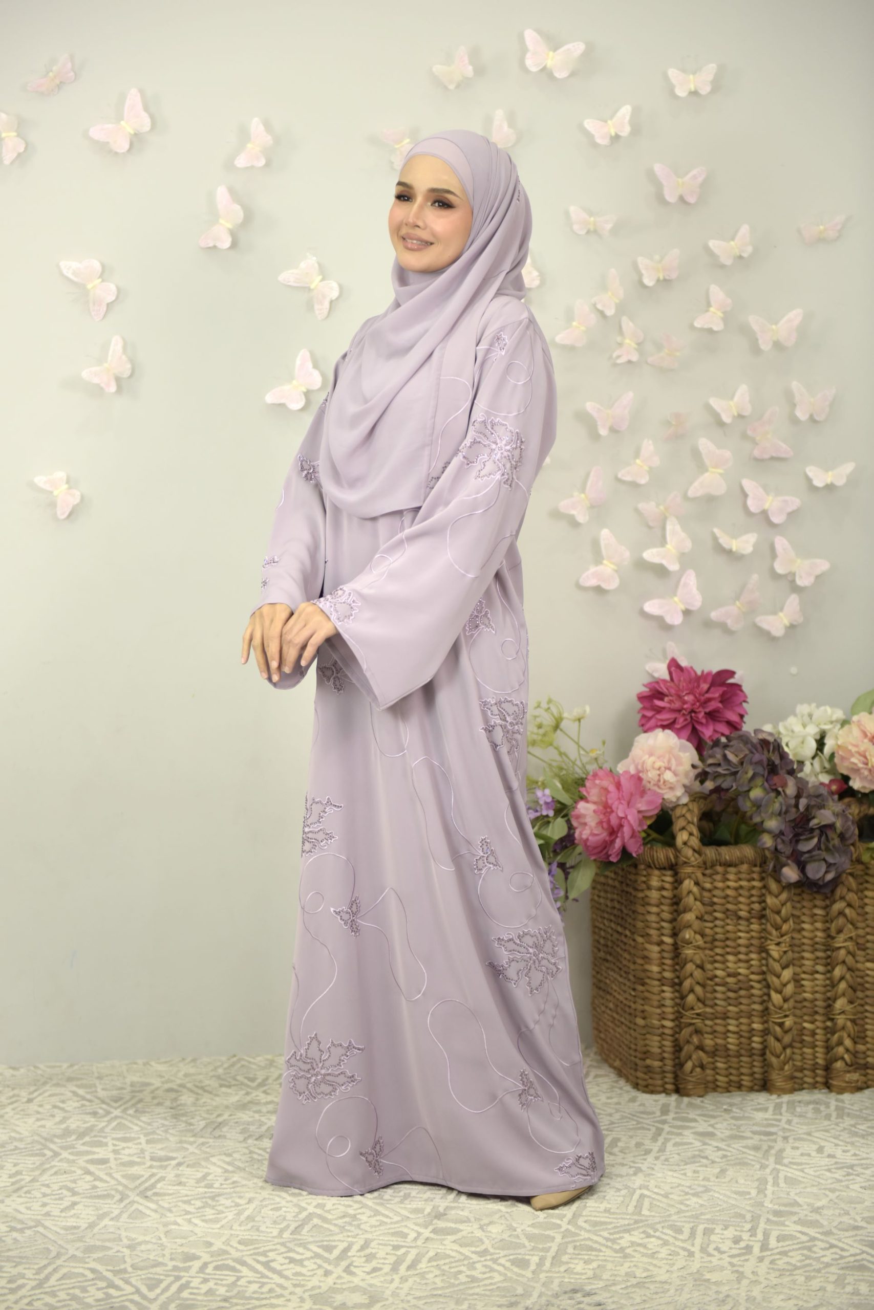 Bunga Abaya – this abaya defines sweet and elegance in its truest form. Adorned with neat and immaculate embroidery lines with shimmery touch of beautiful stones around, you’ll surely look endearing! This abaya is made of soft and comfortable Nida fabric and comes with a matching shawl!