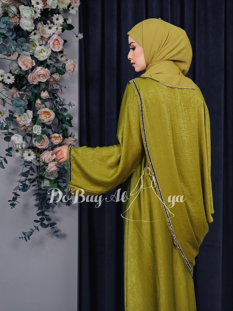 Claim your throne with this latest colours of Maharani Abaya! This Maharani Abaya is like its name, queen-like, perfect for those who love flowy, cape-y and elegant abaya. It is embellished with intricate and sparkly handmade beads around the hem of the sleeves and cape. It is perfect for special occassions, eid 2023 definitely, or just any festivity celebrations. The fabric is soft but not easily wrinkled and surely comfortable to wear anytime, anywhere.