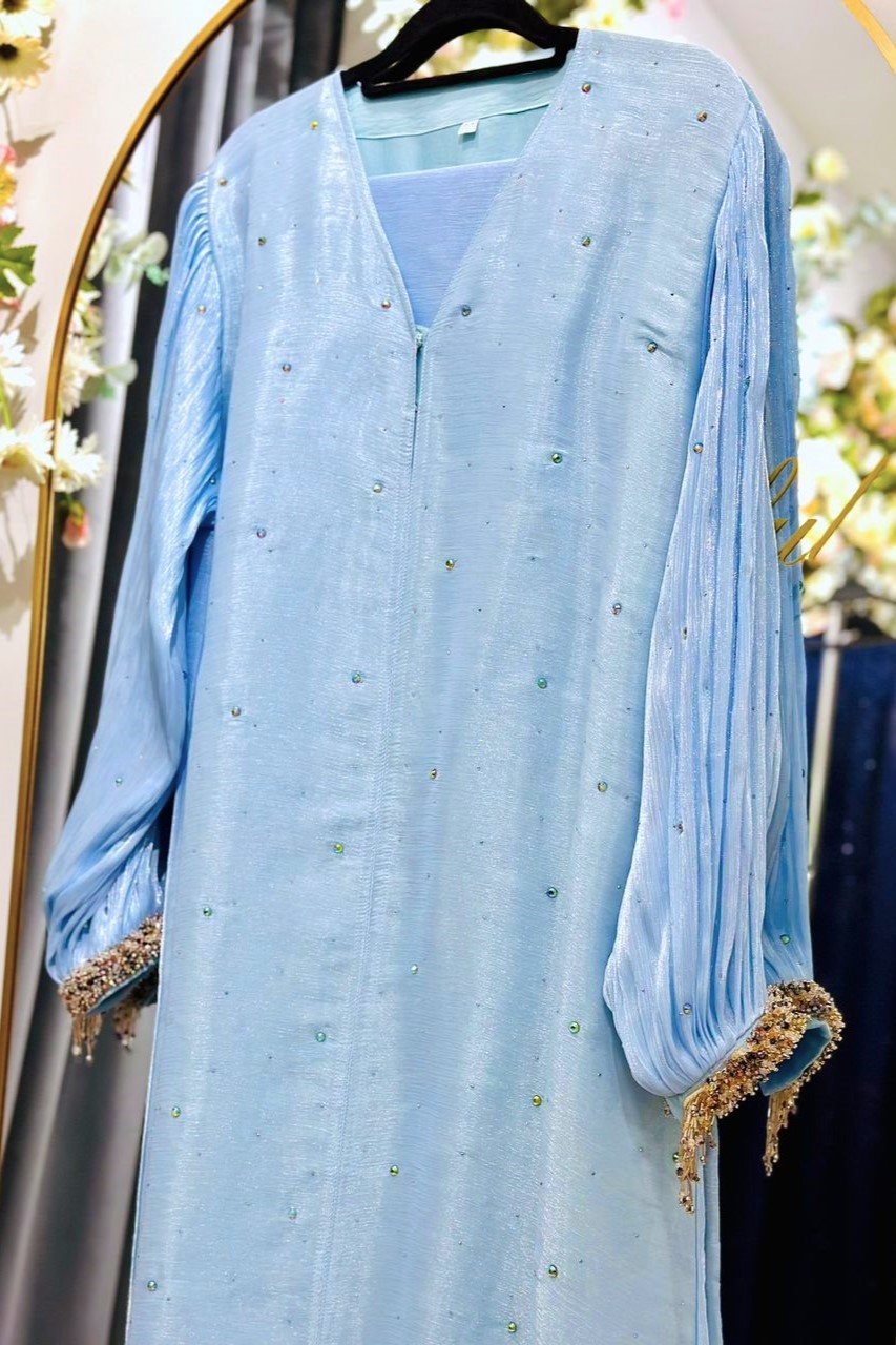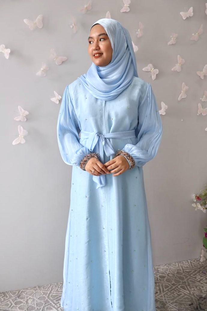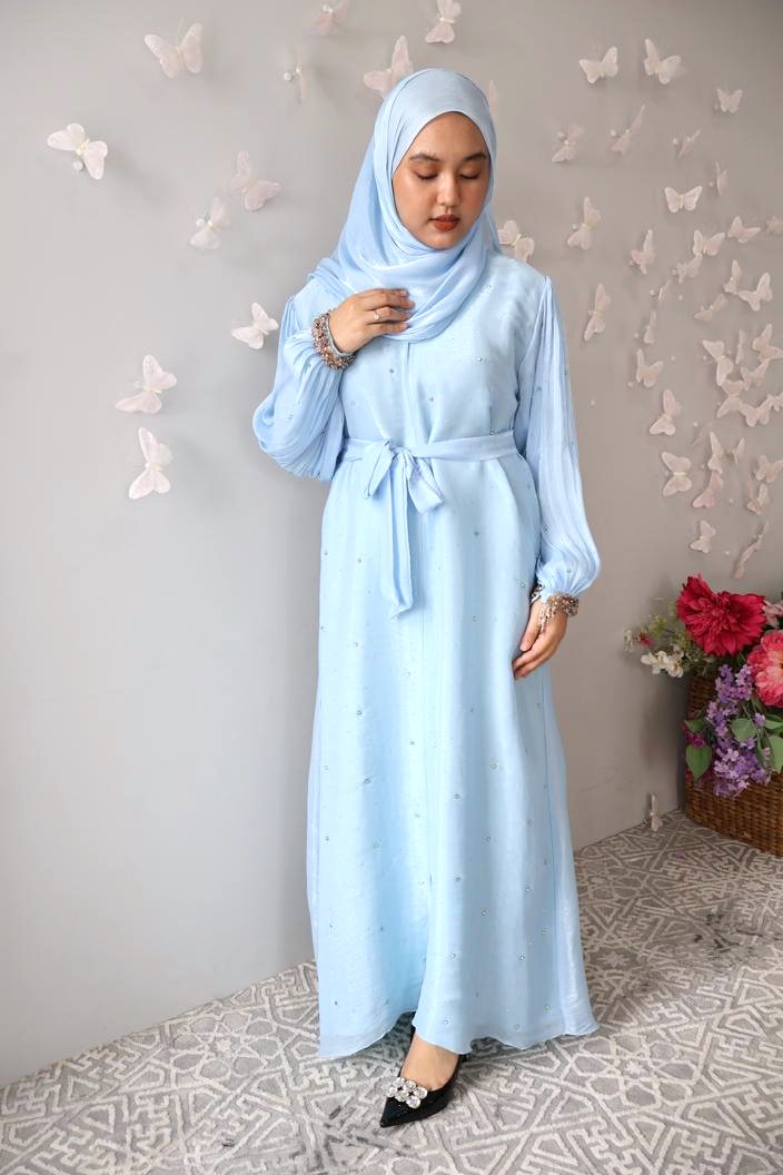 Incorporate soft shimmers into your daily look with this new variation of Maya Abaya – Maya Cuff Front Stones Abaya. This abaya is made of lightweight and sheer Rose Organza fabric that is delicate, graceful and comfortable to wear. For this latest variation, its bishop-poet sleeves are embellished with beautiful shiny crystal beads around the cuff (wrist). To polish the look even more, sparkly stones are embellished on the front of the abaya. Perfect for this eid, special occassions and any festivity celebrations!