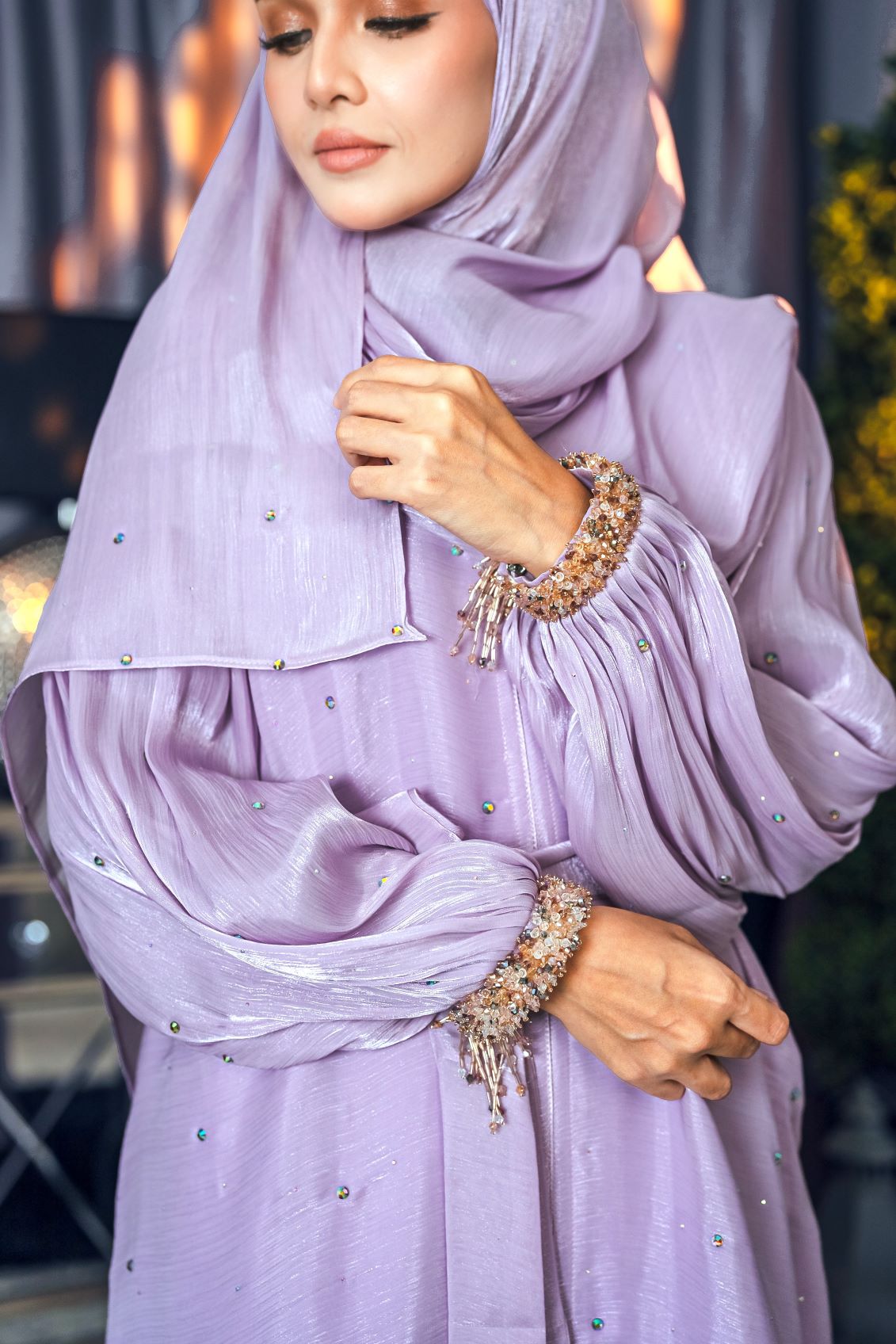 Incorporate soft shimmers into your daily look with this new variation of Maya Abaya – Maya Cuff Front Stones Abaya. This abaya is made of lightweight and sheer Rose Organza fabric that is delicate, graceful and comfortable to wear. For this latest variation, its bishop-poet sleeves are embellished with beautiful shiny crystal beads around the cuff (wrist). To polish the look even more, sparkly stones are embellished on the front of the abaya. Perfect for this eid, special occassions and any festivity celebrations!