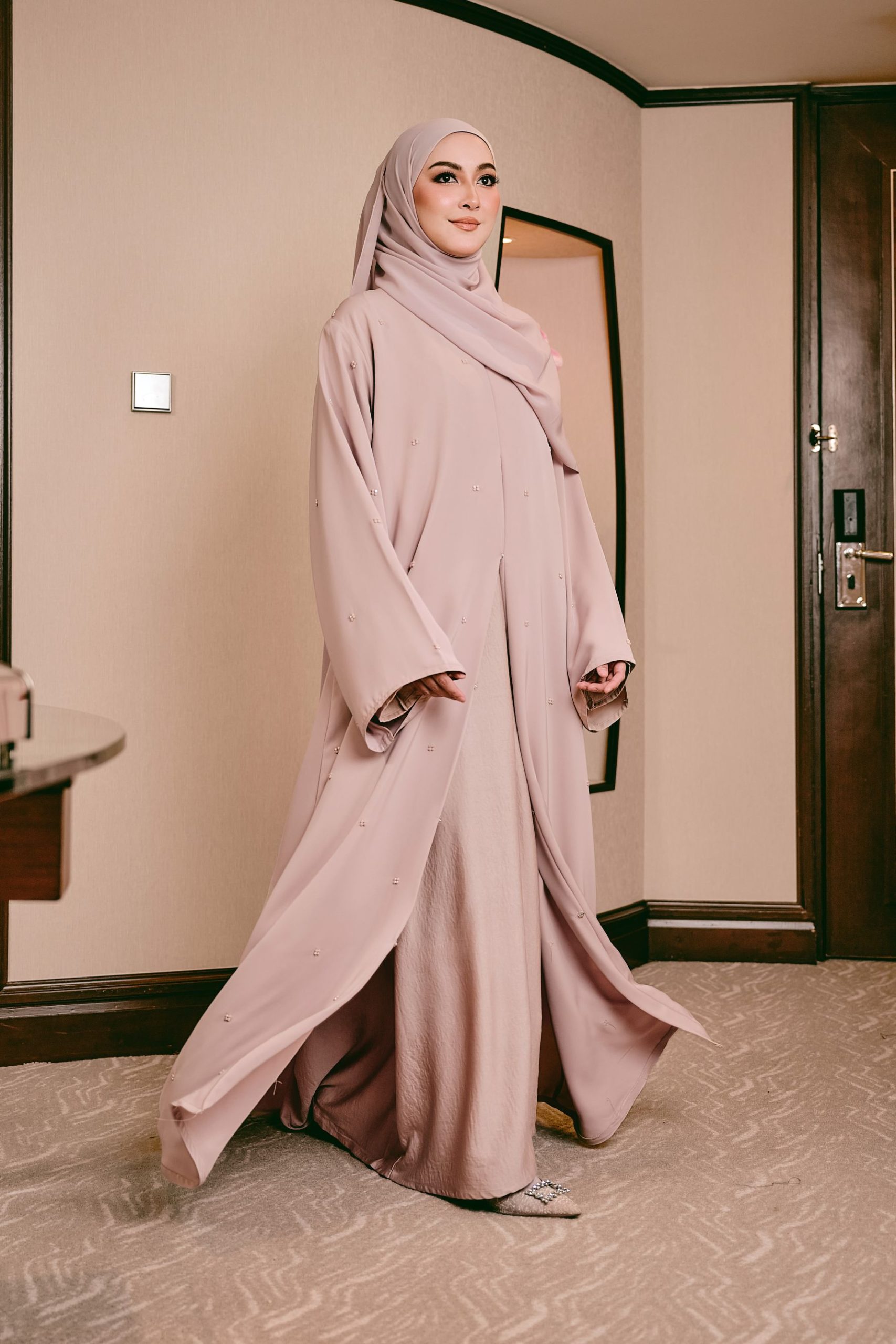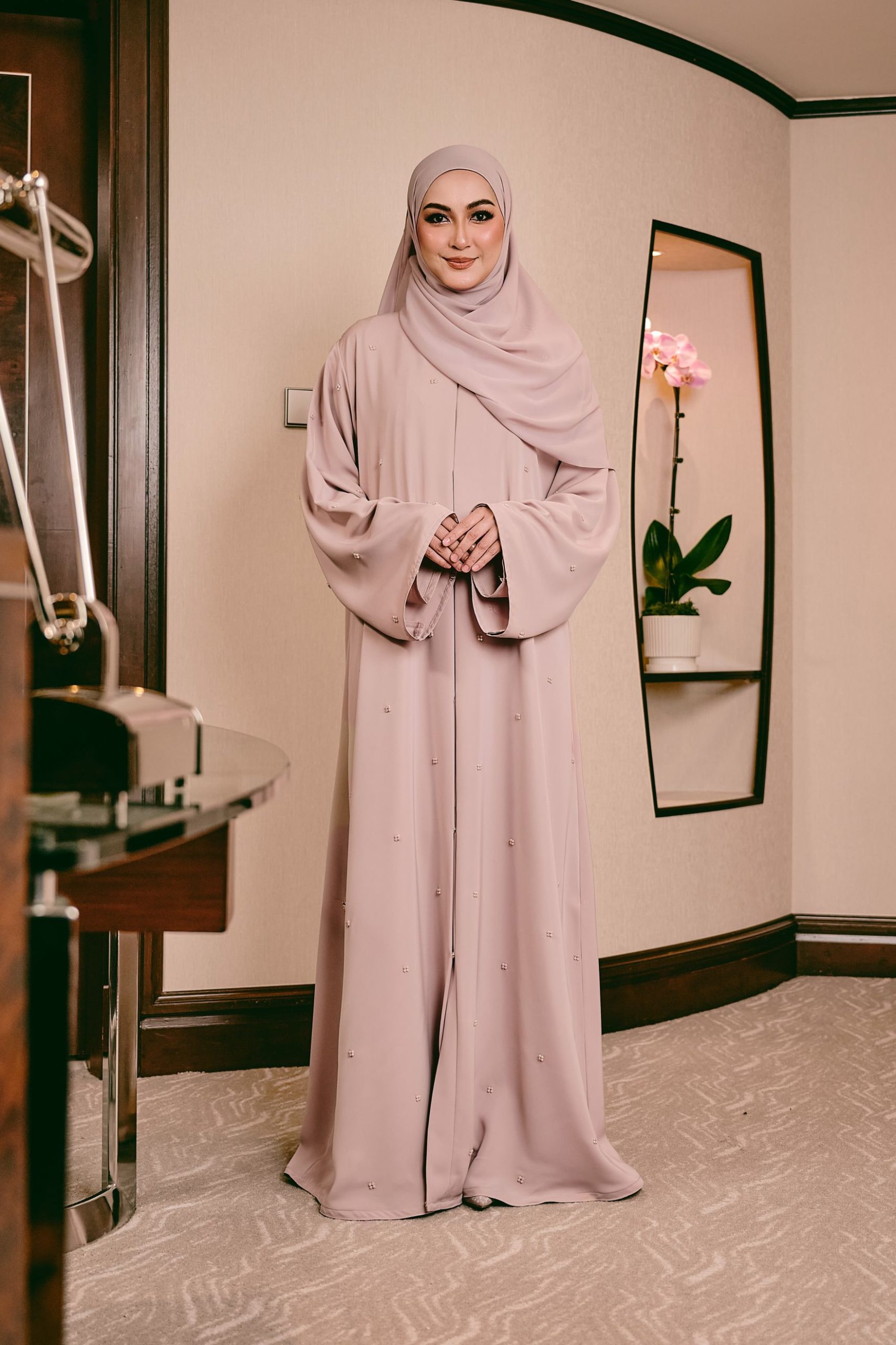 This elegant abaya features a flowing, modest silhouette designed for timeless appeal. Simple, tiny bead work is carefully scattered across the abaya, adding a subtle touch of sparkle while maintaining a refined look. The loose-cut sleeves and relaxed fit provide comfort and graceful movement. Finished with a clean, minimalist design, this abaya is perfect for both special occasions and everyday elegance.