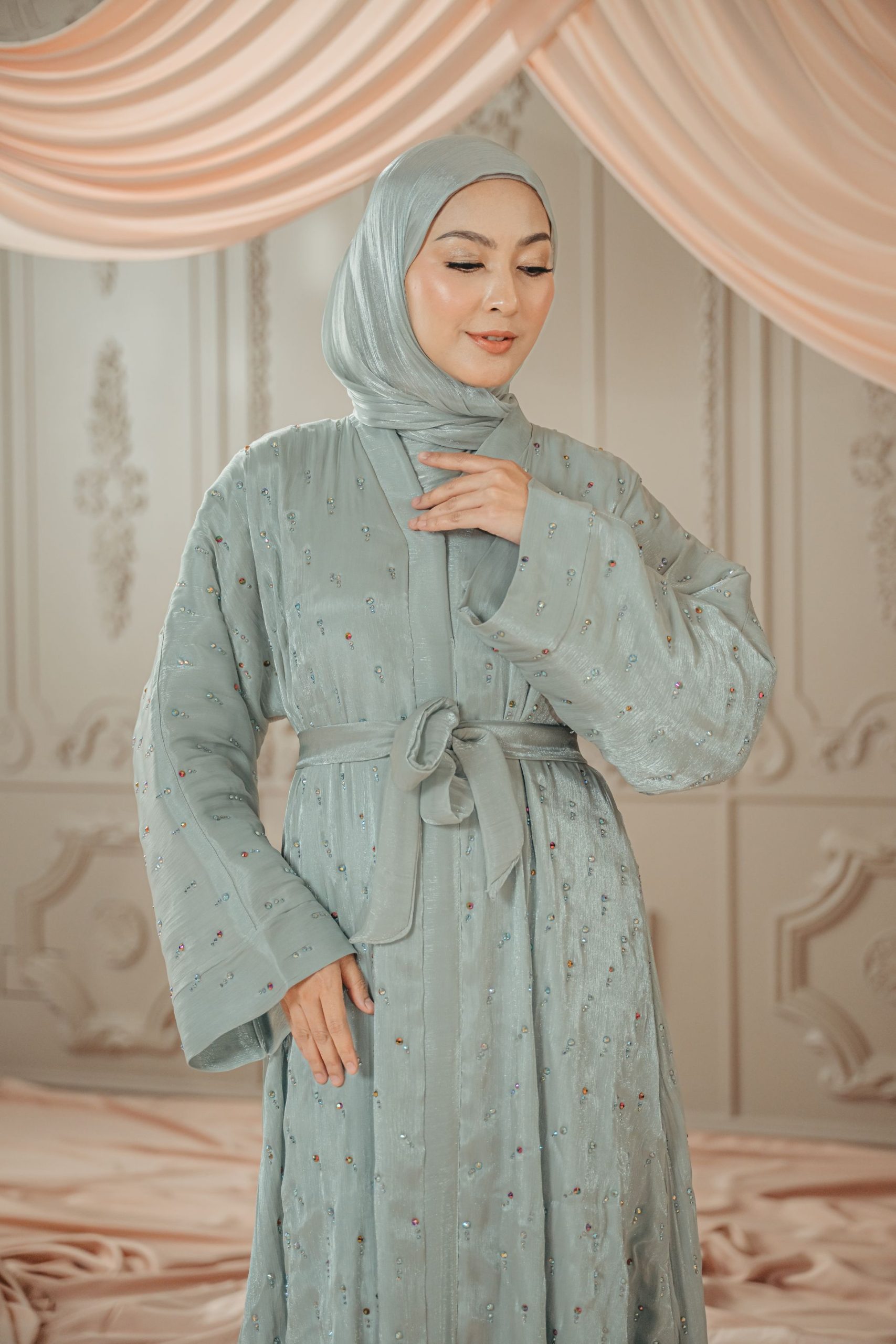 Stardrop Abaya – abaya that enchants with its shimmers and glitters! It is a farasha cut abaya adorned with lavish sprinkles of shiny stones. Soft and comfortable to wear for any occasions and festivities!