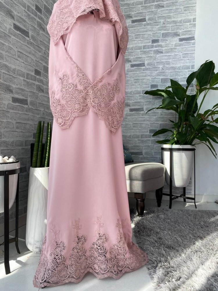 Ready Stocks Luna Lace Abaya – Pink