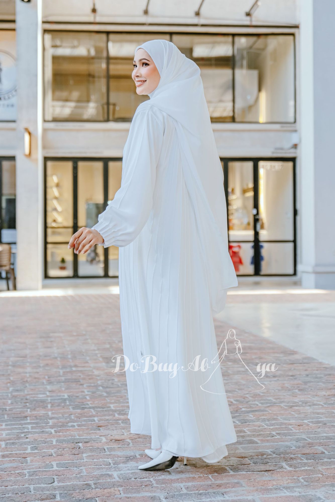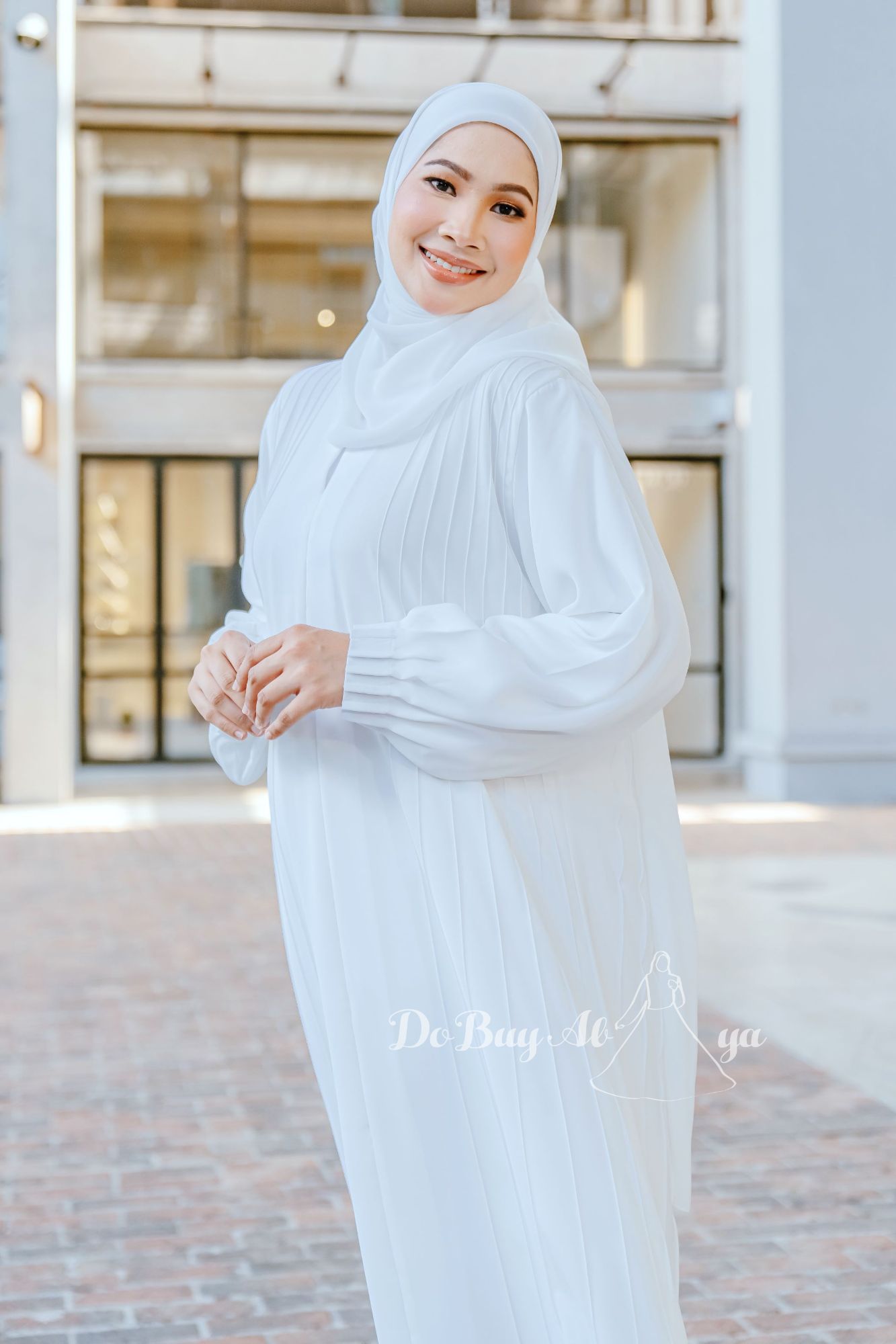 Iyna Abaya, a flowy abaya with simple but elegant embellishment of symmetrical pleats, front and back. It is lined pleats that swing open like a handheld fan. Flowy, graceful and perfect for any occasions.