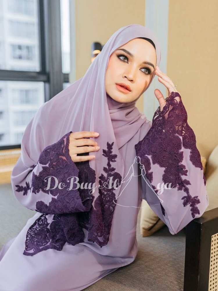 Ready Stocks Luna Abaya Light Purple – Dark Lace